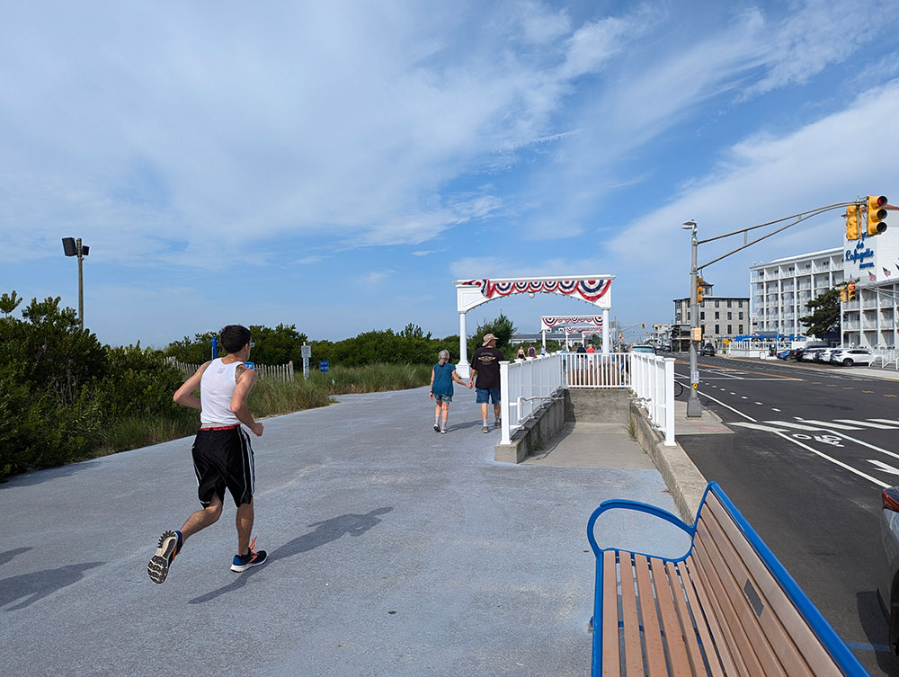 Cape May’s promenade runs parallel to Beach Avenue and stretches for nearly two miles, taking you on a scenic walk or run past Cape May’s beaches. Though it’s sometimes referred to as a boardwalk, our promenade is actually paved (the last wooden boardwalk was destroyed in the 1962 nor’easter).