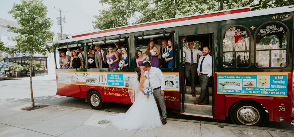 Looking for local transportation for your wedding party or guests? Book one of Cape May’s iconic red trolleys for your special occasion. Our trolleys hold a maximum of 34 people (A wheelchair accessible trolley is available upon request). Trolleys can be reserved for weddings and rehearsal dinners, after-parties, and even for private tours for your family and guests!
