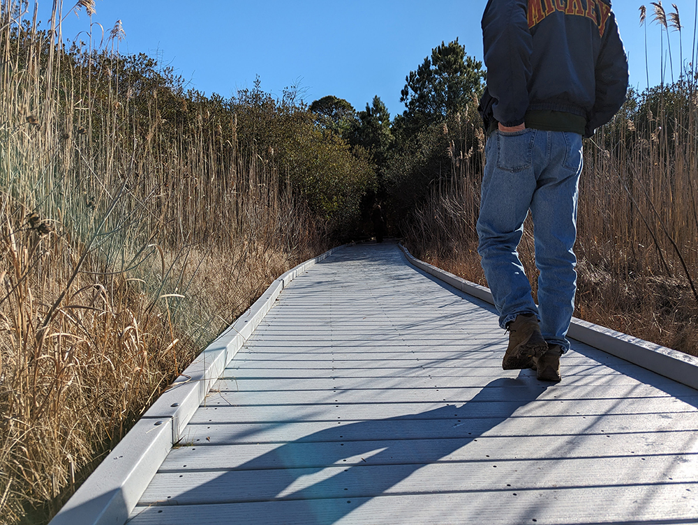 The park is free to the public, an ideal location for birding, picnics, painting, photography, and nature walks. Explore ponds, coastal dunes, marshes, and forest habitat on one of the three hiking trails that range from 0.5 to 2 miles in length. Along the trails are occasional benches and birding blinds. Wear sturdy walking shoes if you’re headed down the Yellow or Blue trails, as parts of the trail will take you through wooded areas that may be muddy! The shortest, the Red Trail, is entirely on a raised footpath and wheelchair accessible. Download a detailed trail guide from the state’s website.