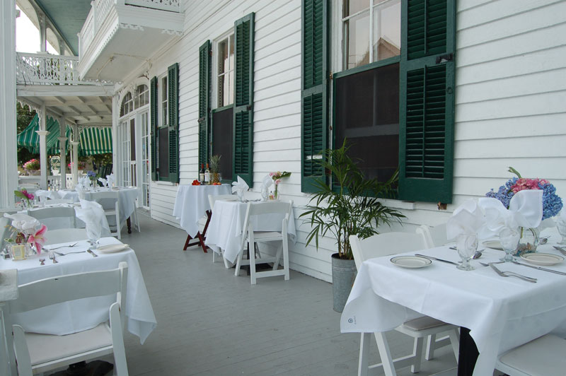 Dining in the nationally acclaimed Magnolia Room is an experience in traditional Southern fare. Featuring Dot and Lucille’s famous fried chicken, crab cakes, yeast risen rolls, corn pudding, spoon bread and delicious desserts such as blueberry cobbler and lemon meringue pie, our three-course price-fixe menu is one of the best values in town! The Magnolia Room also offers daily grilled fish specials and vegetarian options, a morning breakfast buffet and Sunday dinner buffet. Our veranda on a summer evening is the outstanding dinner location in Cape May.